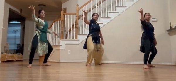 Mohiniattam rehearsal (Kavya, Keerthana, and Hasini)